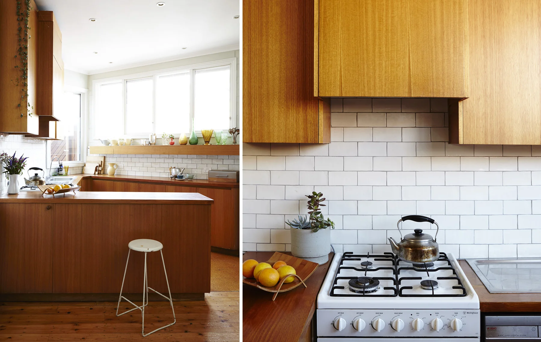 The triangle kitchen is our favourite part of this house. Surprisingly functional for such an awkward shape, the timber cabinetry is the original 1970's fit out.